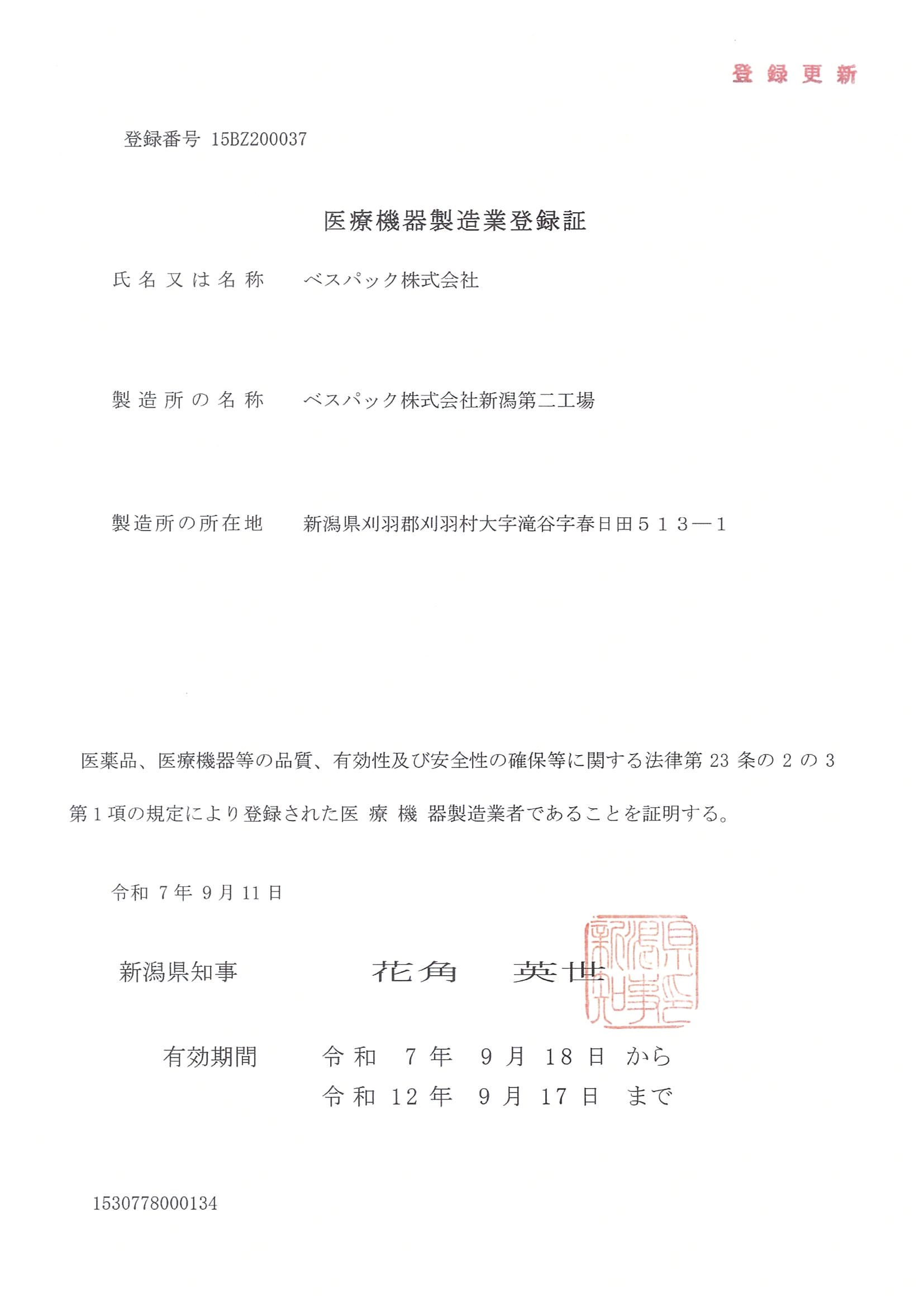 | 登録機関 | 新潟県福祉保健部 医薬国保課 |